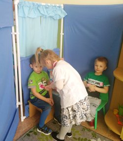 13.02.2020г. в средней группе «Б» детского сада «Ласточка» МКОУ «Прогимназия № 13 г. Майского» особенное внимание уделяется организации сюжетно-ролевых игр (воспитатель группы Решетникова Т.М.). Воспитанники с удовольствием перевоплощаются в пациентов и врачей, маму, папу и других членов семьи.