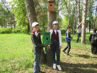 23.04.2021г. учащихся приняли участие в экологическом марафоне, они развесили в районном парке скворечники.